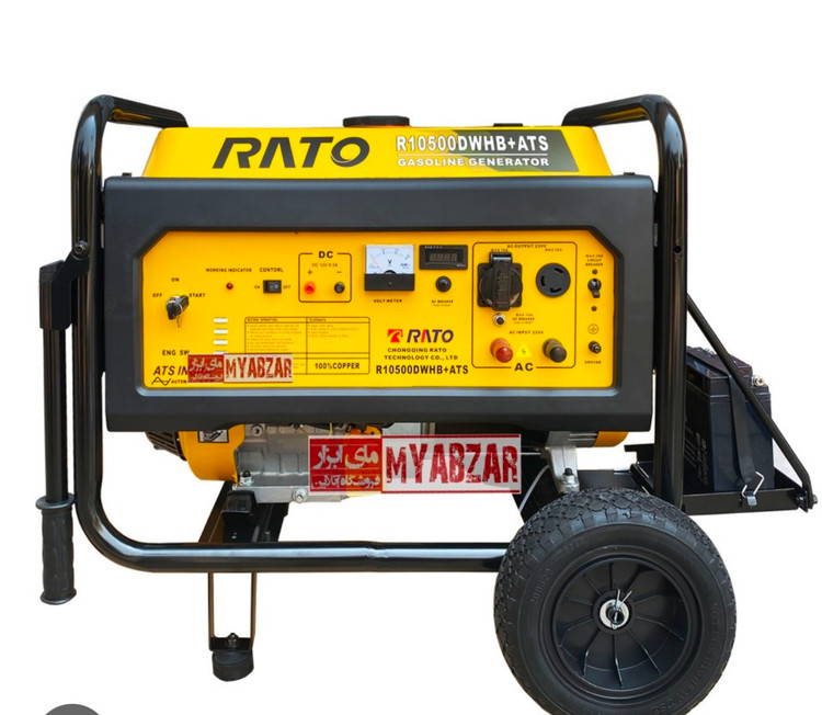 RATO کشور سازنده چین ،قدرت موتور 16.5 اسب بخار،حواکثر خروجی برق 7.5 کیلو وات، امپر خروجی 33.1 امپر،نوع ولتاژ خروجی Hz50/220v,برق خروجی 12v/83A,ظرفیت باک بنزین 25 لیتر،صدای دستگاه74.0 دسی بل، مدت زمان کار 7 تا11 ساعت، ابعاد836×580×580،وزن 93 کیلو گرم