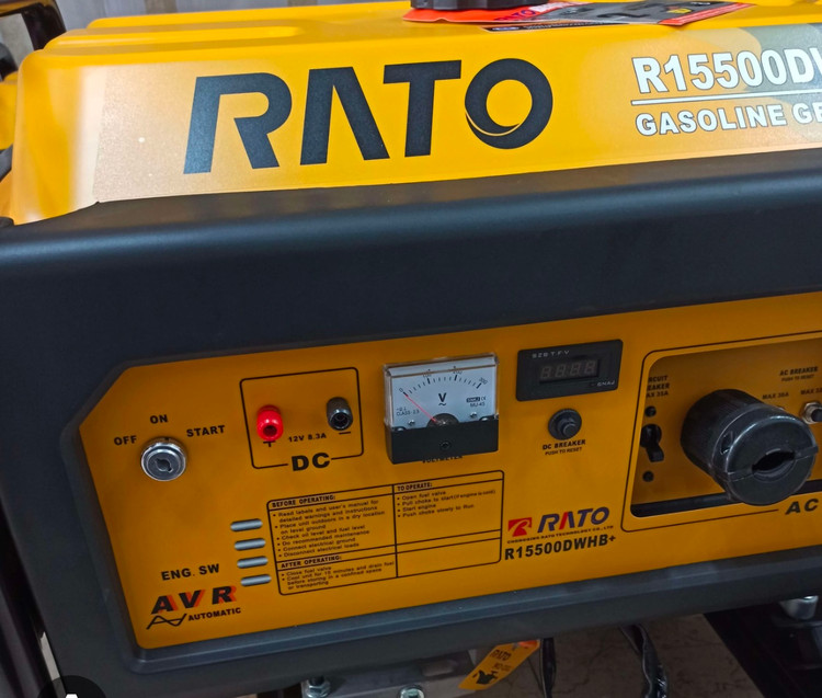 موتور برق راتو مدل +R15500DWHB توانسته ساختار و کیفیت بسیار بالایی را در بازار به خود اختصاص دهد. این محصول در ابعاد 55*56*73 سانتیمتر و دارای وزن حدود 114 کیلوگرم را دارد. خوب است بدانید که سوخت مصرفی این دستگاه بنزین است. محصول فوق روی شاسی بسیار مقاوم سوار شده و استارت ان به صورت دستی و الکتریکی است. لازم به ذکر است که ظرفیت مخزن سوخت این موتور برق حدود 25 لیتر و حجم موتور آن 500 سی سی است. از ویژگی های بارز این محصول میتوان به ولتاژ خروجی 220 ولت، ولتاژ خروجی 12 ولت و شدت جریان خروجی حدود 8.3 آمپر برای خروجی DC و حدود 36.3 آمپر برای خروجی AC اشاره کرد. محصول فوق تکفاز بوده و دارای دو خروجی AC است.