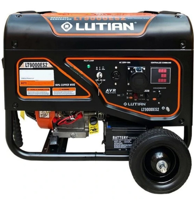 موتور برق 8000 وات بنزینی لوتیان مدل LT9000ES2 از نوع موتور هواخنک, چهازمانه و تکفاز میباشد.دارای موتور قدرتمند به توان 16 اسب است که در حالت اوج به خروجی برق 8000 وات میرسد.دارای چرخ , دسته